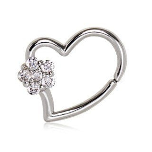 - CARING FOR YOUR PIERCING JEWELRY: Clean gently with saline solution. Use a soft brush around the CZ flower to maintain sparkle. Handle carefully when adjusting the flexible heart shape to prevent over-bending and preserve the romantic silhouette.