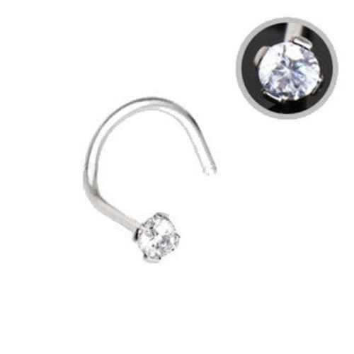 Classic screw nose ring featuring a 2mm clear cubic zirconia stone secured in a four-prong setting for maximum brilliance and security. This 316L stainless steel piece offers the reliable retention of screw construction while the prong-set CZ creates sophisticated sparkle that catches light beautifully. The secure four-prong mount ensures the stone stays firmly in place while the screw design provides comfortable wear and easy insertion for daily use.