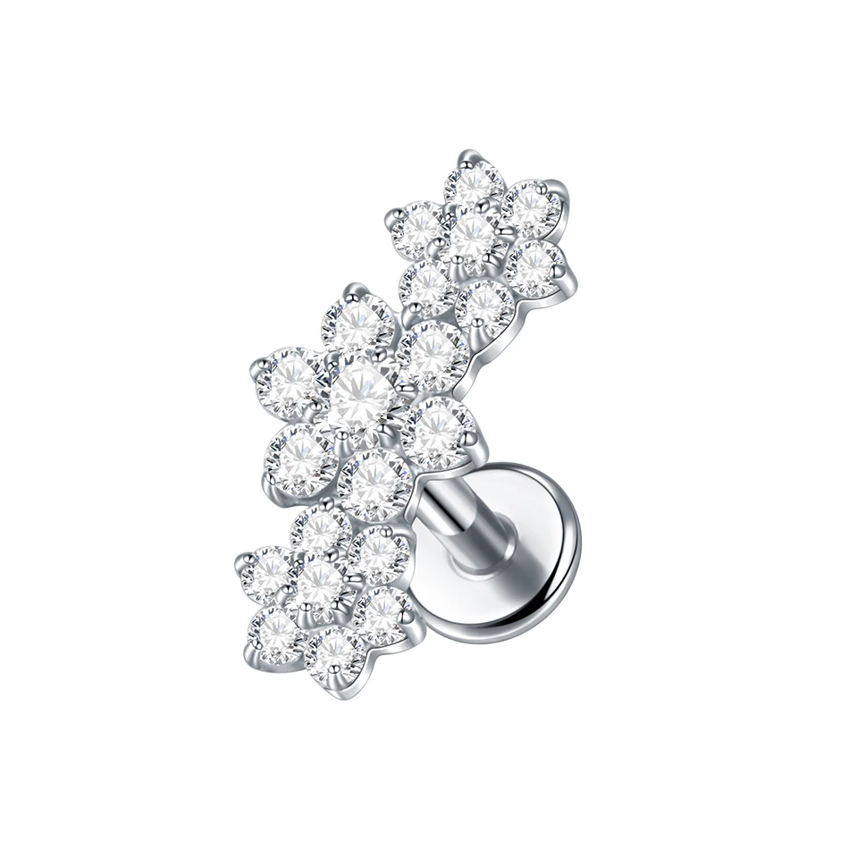 Premium G23 implant grade titanium labret stud featuring sparkling cubic zirconia crystal top for elegant piercing aesthetics. This internally threaded design combines cute and romantic styling with medical-grade titanium construction for superior biocompatibility and hypoallergenic properties. The flat back design ensures comfortable wear while the CZ crystal top adds brilliant sparkle perfect for creating personalized piercing looks across multiple locations with professional-grade safety.