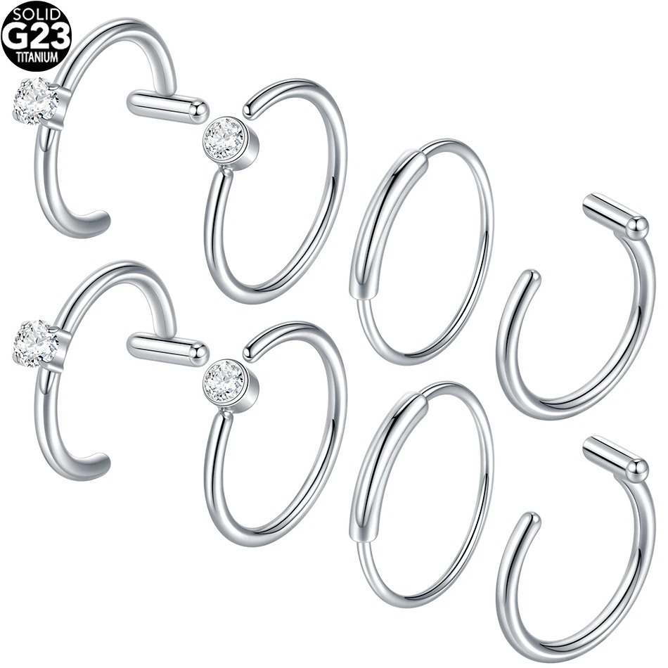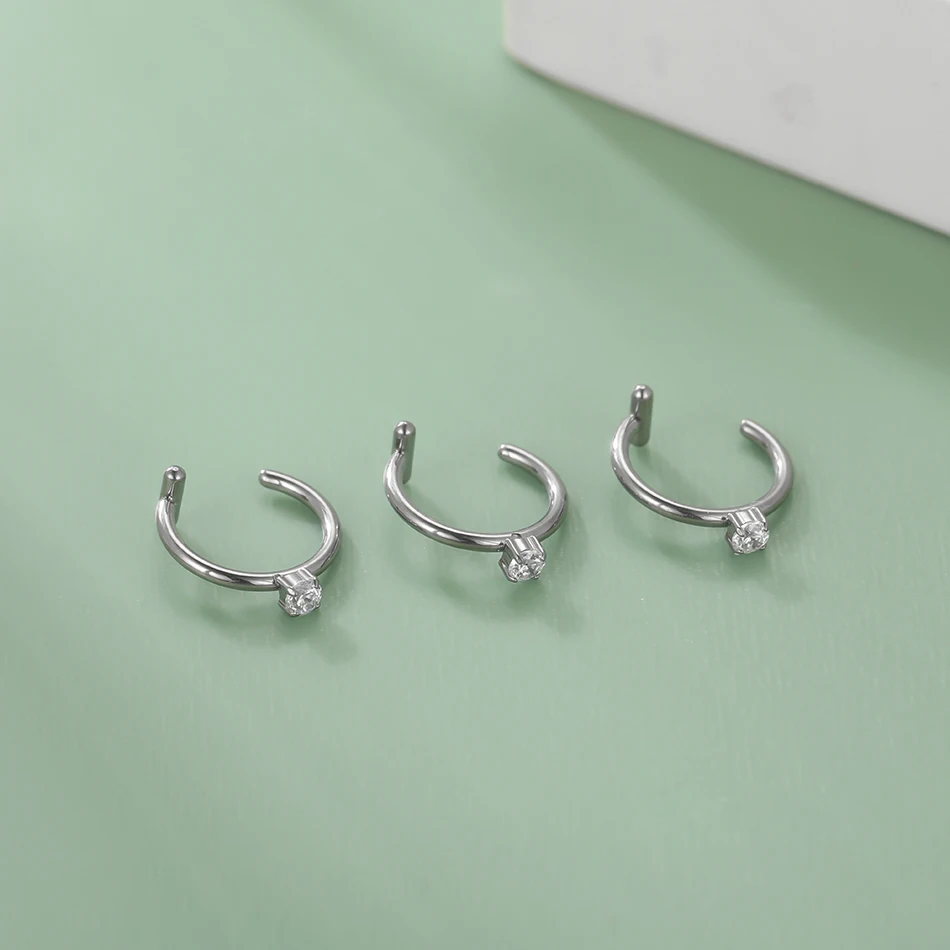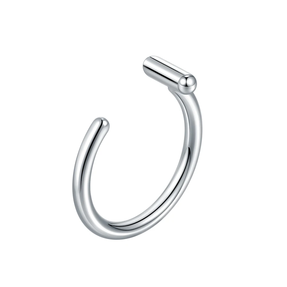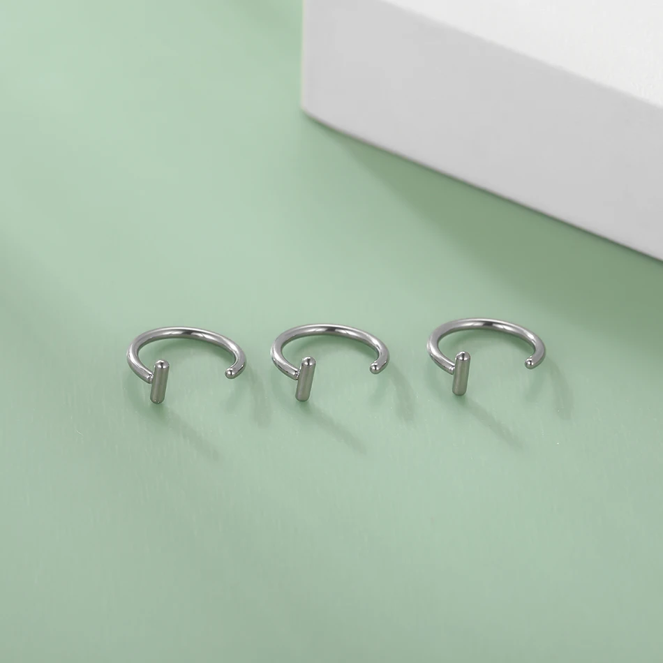 Trendy titanium clip-on fake piercing nose hoop designed for non-pierced styling with punk aesthetic appeal and comfortable no-commitment wear. This innovative piece allows users to achieve pierced look without actual piercing through secure clip mechanism that attaches to nose, lip, or nostril areas. The 8mm titanium construction provides lightweight comfort while the silver color finish creates authentic piercing appearance with adjustable fit for various nose shapes and sizes.