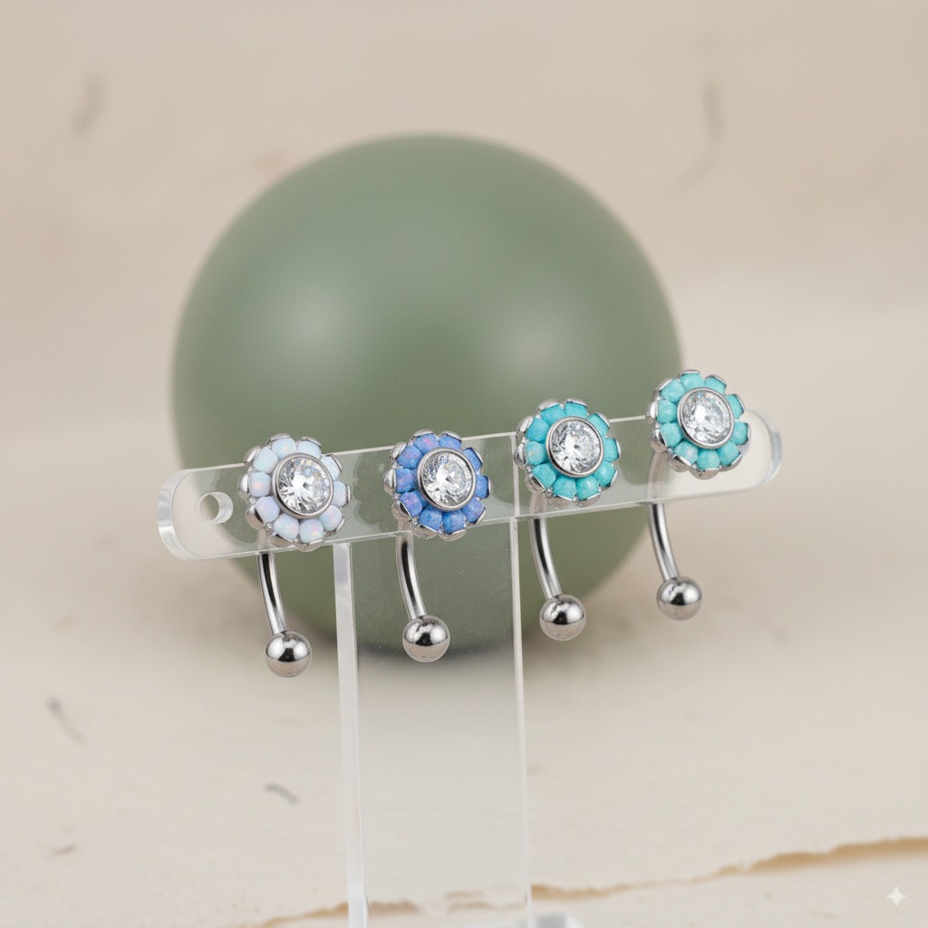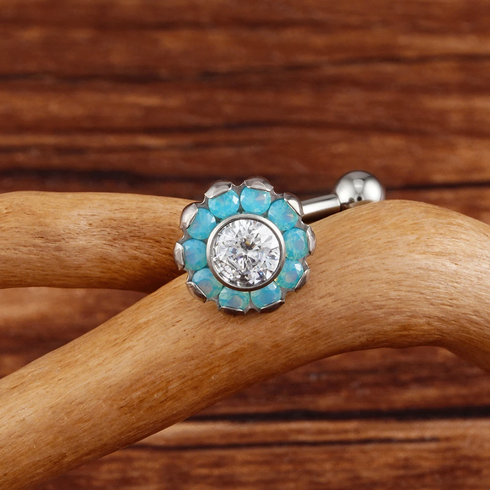 • CARING FOR YOUR PIERCING JEWELRY: Clean regularly with saline solution. ASTM F136 titanium provides superior biocompatibility while synthetic opalite requires gentle care to preserve iridescent properties. Handle curved barbell carefully to maintain flower detailing and stone settings while ensuring secure internally threaded connection.