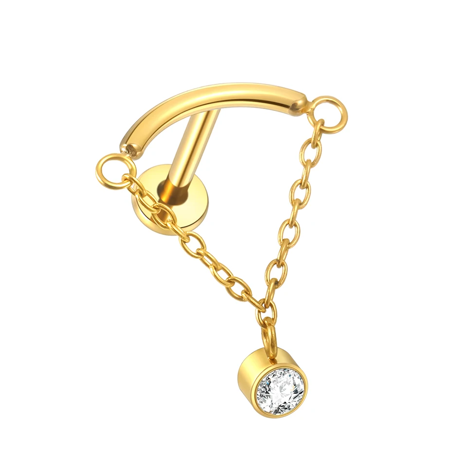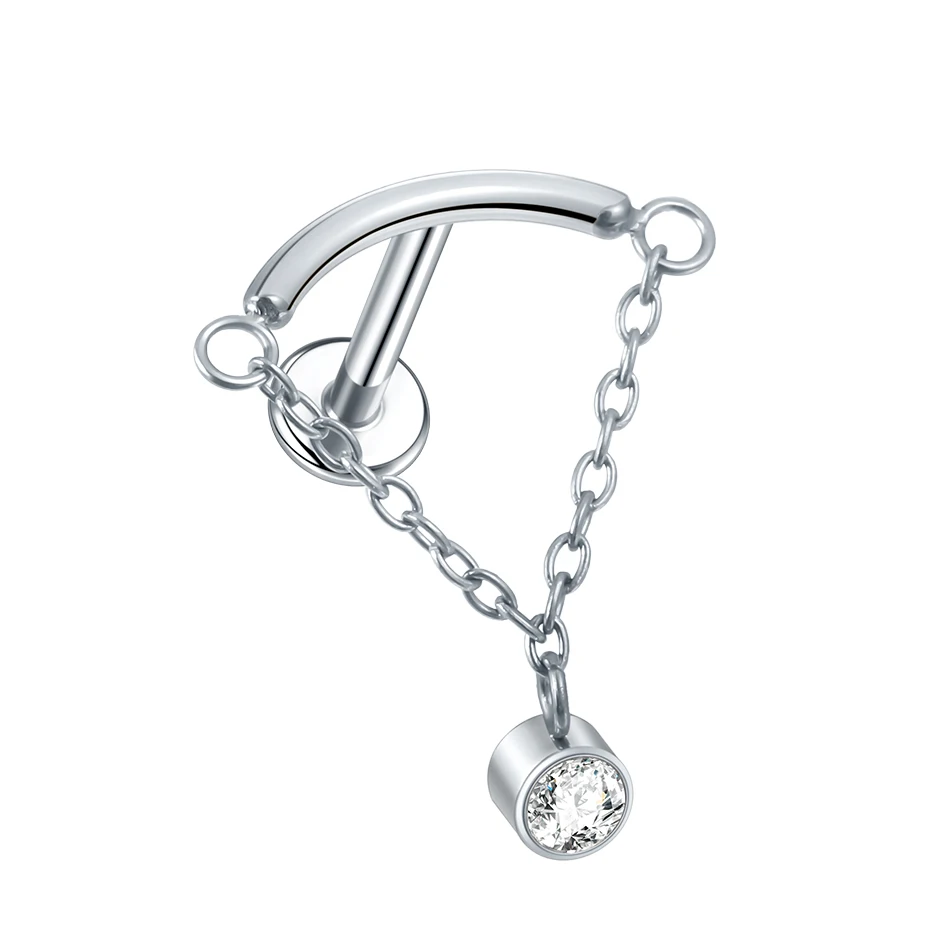 Premium ASTM F136 titanium internally threaded labret featuring elegant chain accent detailing with cubic zirconia elements for sophisticated piercing versatility and contemporary styling. This punk-inspired fashion piece combines medical-grade titanium construction with dynamic chain components that create graceful movement and visual interest. The internally threaded design ensures smooth insertion and comfortable wear while the precision-engineered threading provides secure retention across multiple piercing applications with superior biocompatibility.