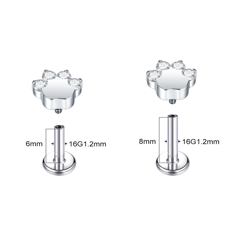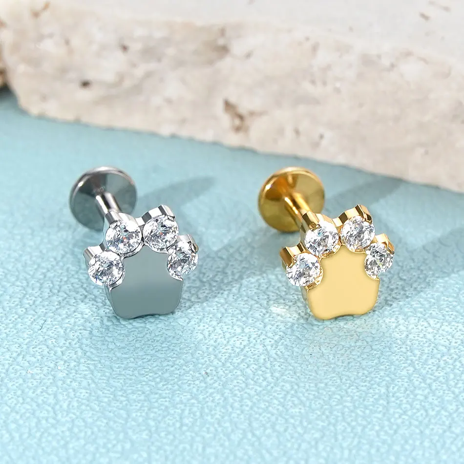 - CARING FOR YOUR PIERCING JEWELRY: Clean regularly with saline solution. G23 titanium provides superior biocompatibility and corrosion resistance. Handle paw print design gently to preserve detailed pet-themed elements while maintaining secure internally threaded connection and protecting finish quality.