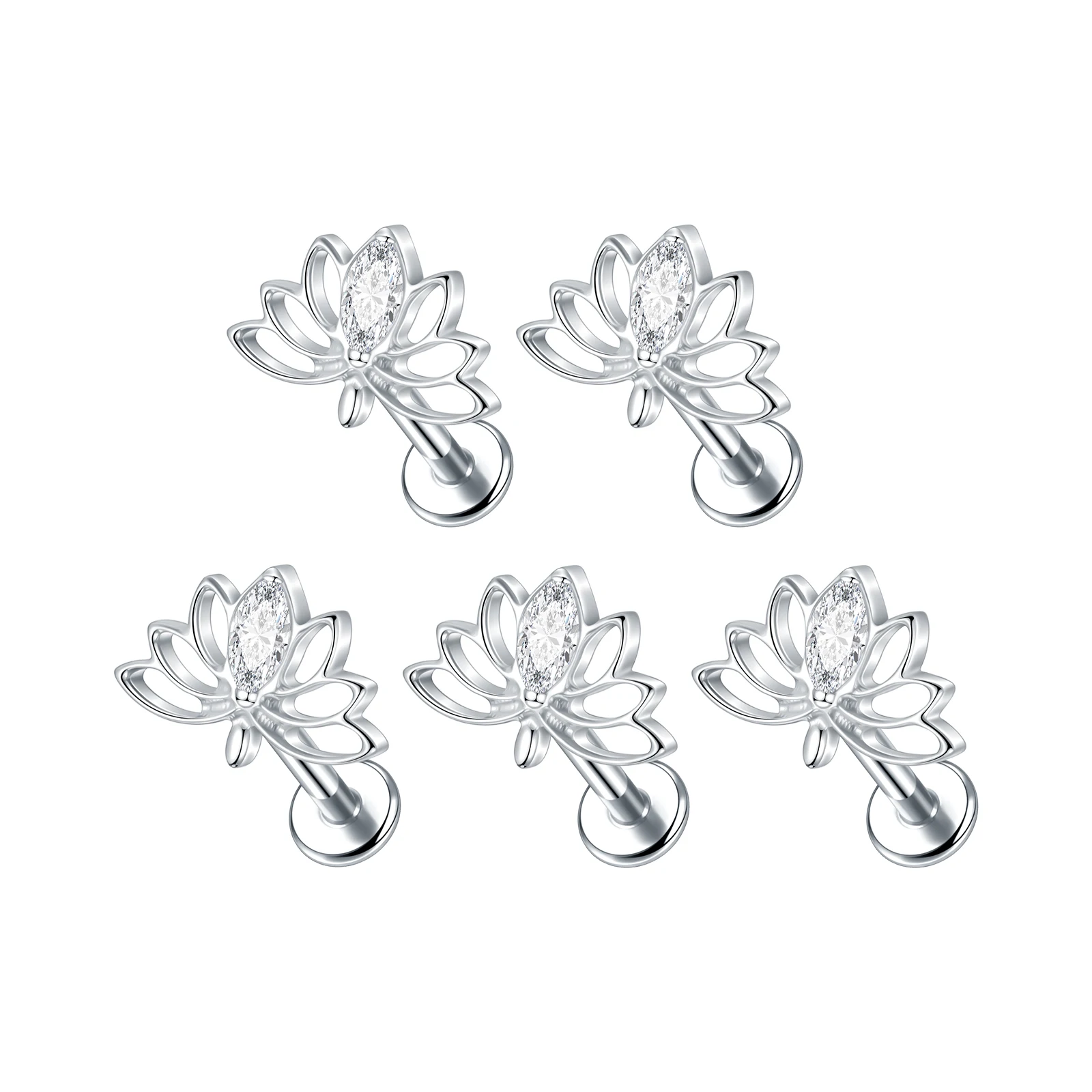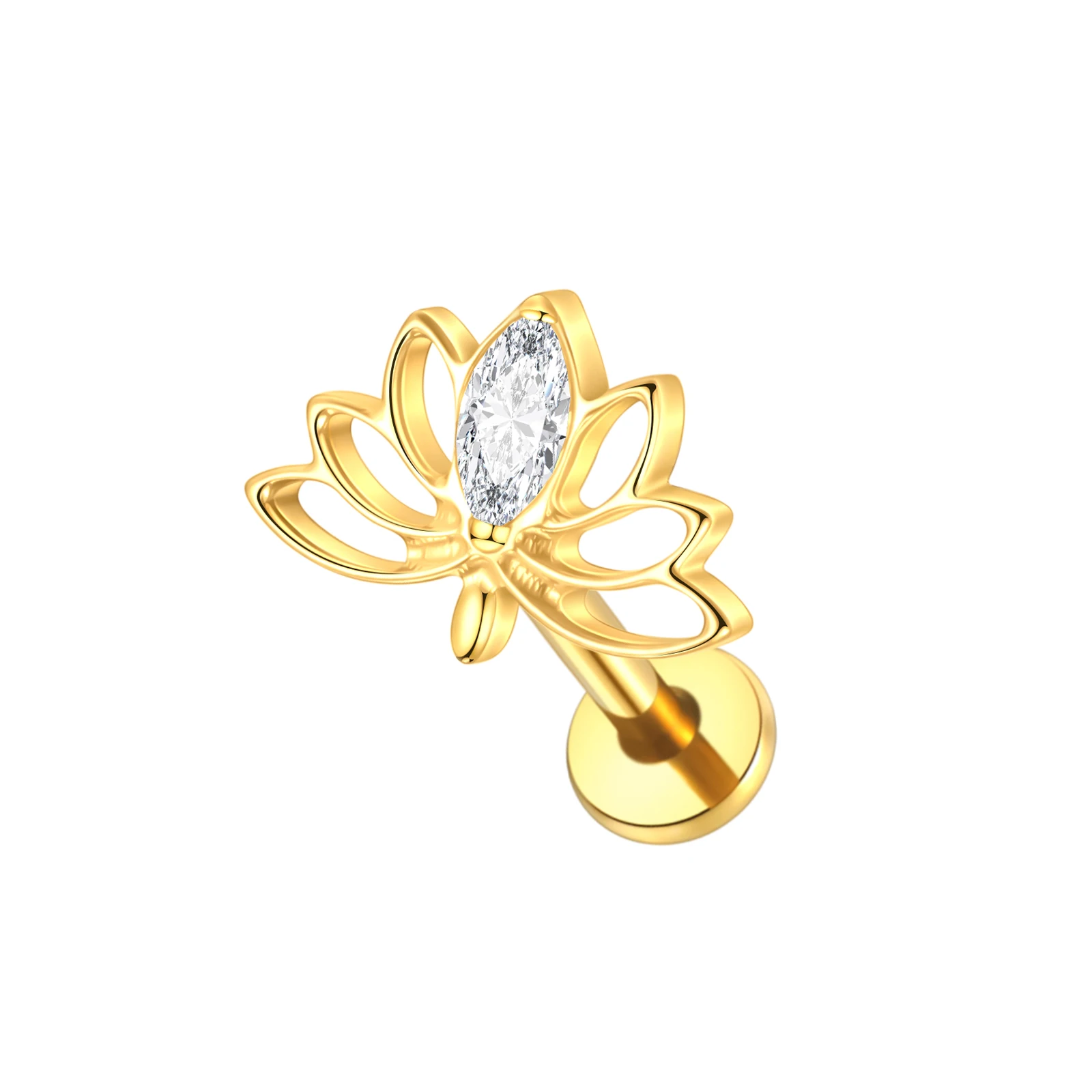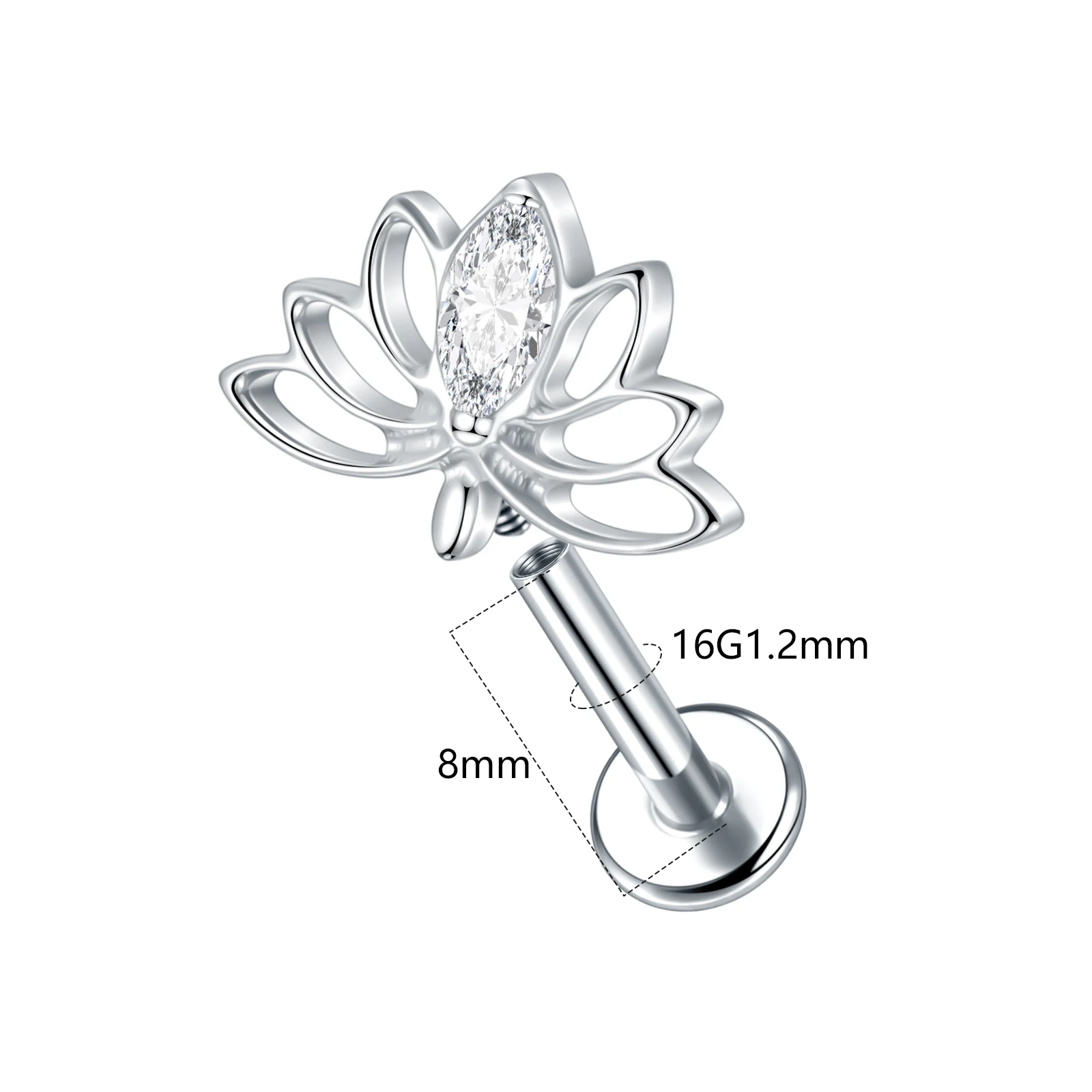 Premium G23 titanium internally threaded labret featuring intricate skeleton flower design with central cubic zirconia stone for trendy piercing versatility and contemporary botanical styling. This sophisticated piece combines medical-grade titanium construction with delicate floral framework that creates elegant openwork detailing around the sparkling CZ centerpiece. The internally threaded design ensures smooth insertion and comfortable wear while the precision-engineered threading provides secure retention across multiple piercing locations with superior biocompatibility.
