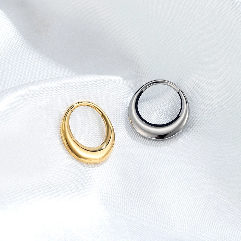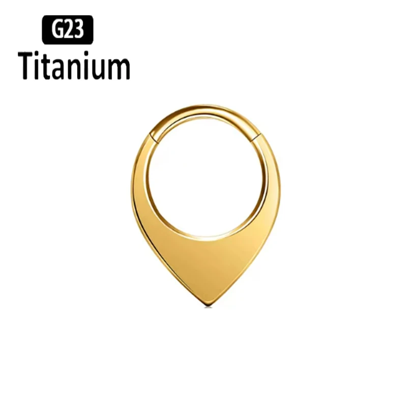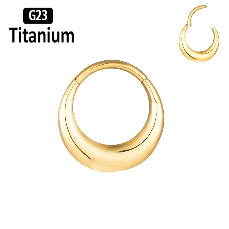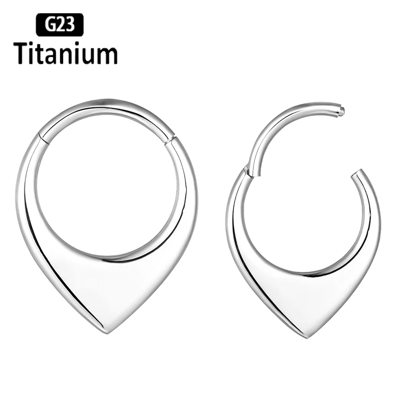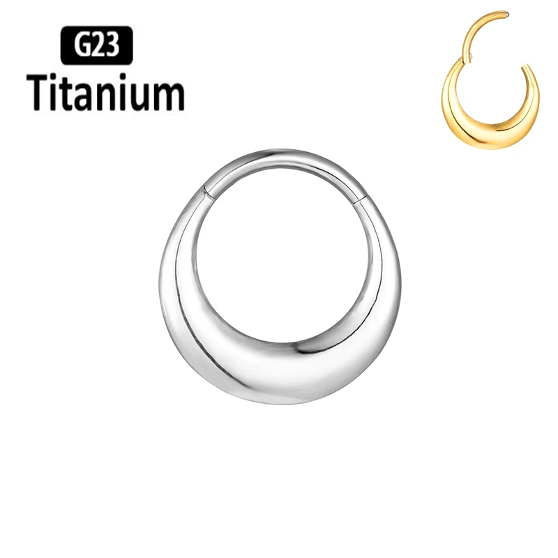 Classic mirror-finished titanium clicker featuring elegant moon and waterdrop design elements for celestial-inspired piercing aesthetics. This ASTM F136 G23 titanium piece combines lunar symbolism with teardrop styling in a versatile segment ring construction. The mirror polish creates reflective brilliance while the clicker mechanism provides secure closure for septum, tragus, cartilage, and daith applications with smooth operation and reliable retention.