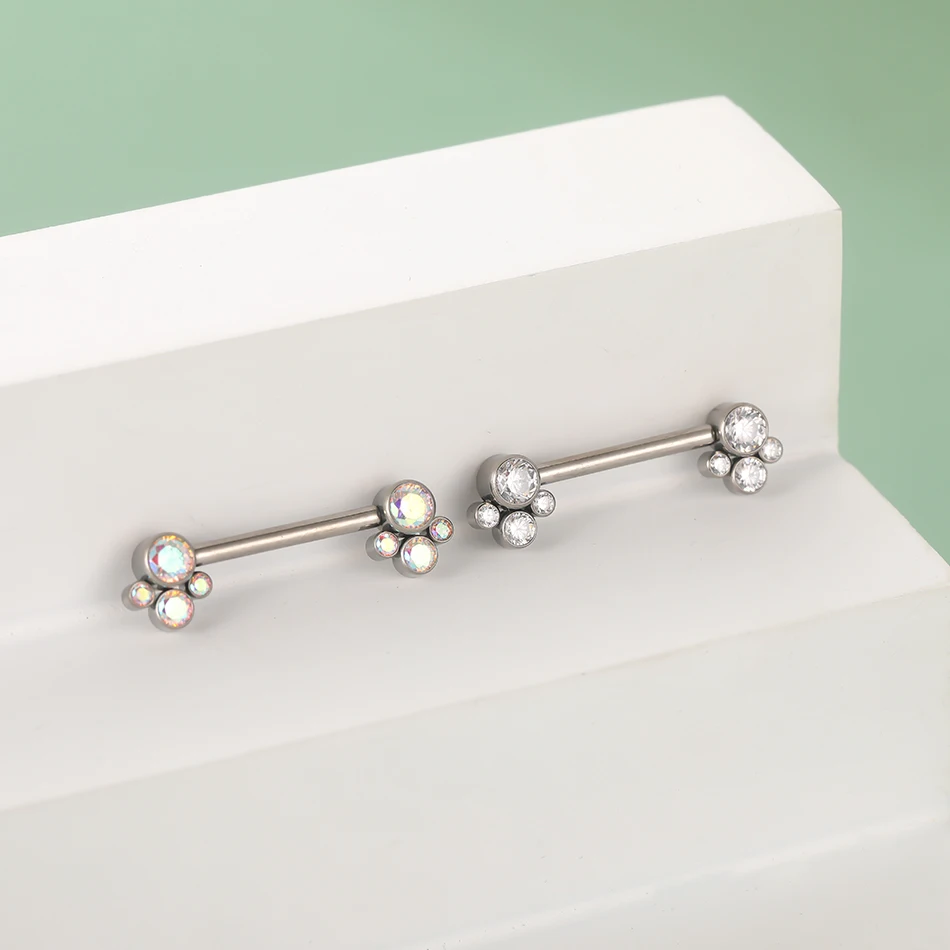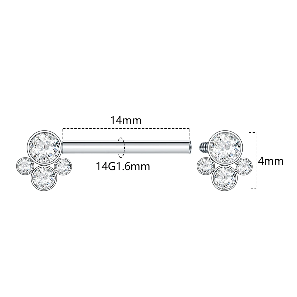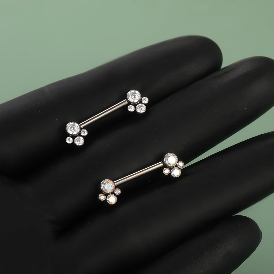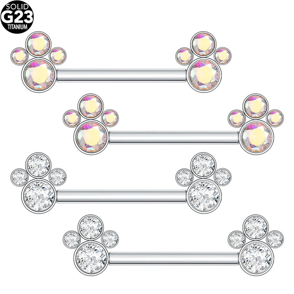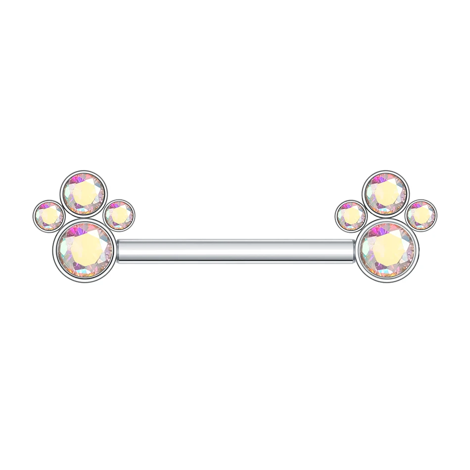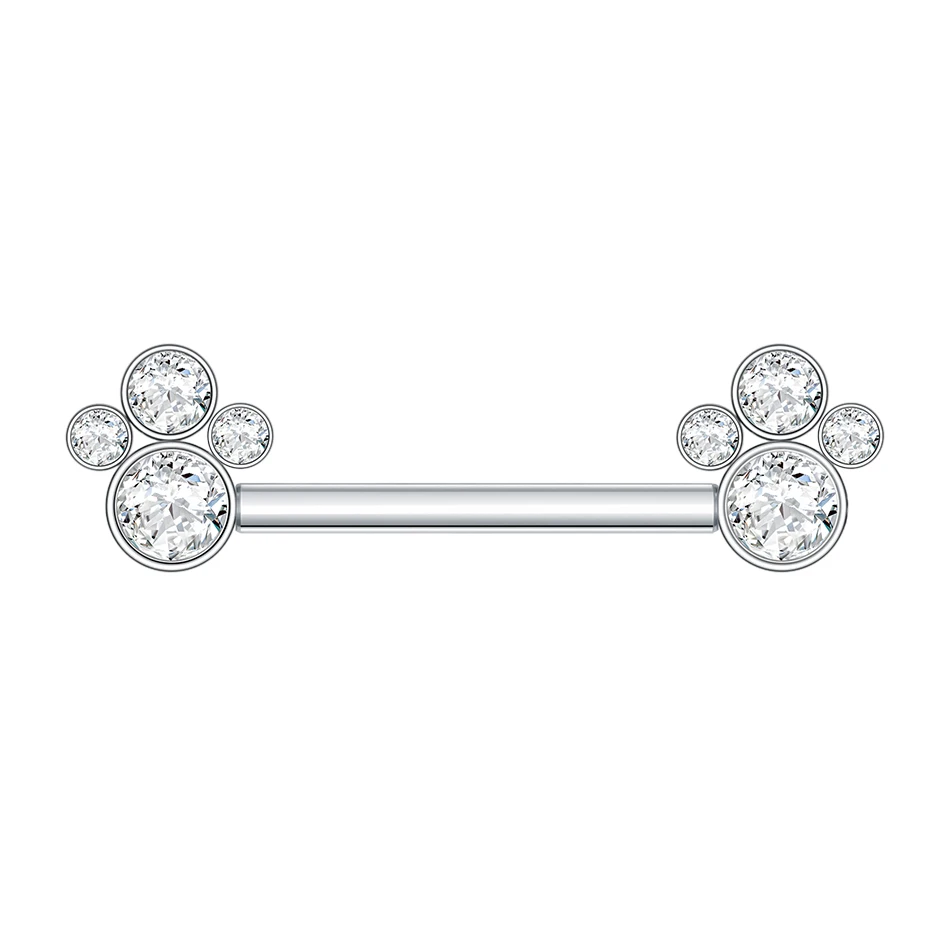 Adorable pet paw-themed nipple barbell crafted from premium implant grade titanium with sparkling cubic zirconia accents. This cute and romantic design features detailed paw print styling that combines playful charm with body jewelry sophistication. The internally threaded construction ensures secure retention while the hypoallergenic titanium material provides safe wear for sensitive skin and healing piercings with professional-grade biocompatibility.