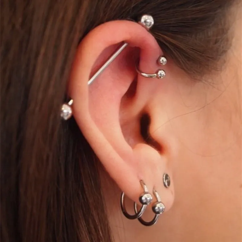 Professional vertical industrial barbell crafted from 100% G23 titanium with vacuum-plated color finish for enhanced durability and visual appeal. This trendy SGS-certified piece features precision-engineered 5mm ball ends and multiple length options to accommodate various ear anatomies. The implant-grade titanium construction ensures biocompatibility and hypoallergenic properties while the vacuum plating process creates lasting color retention for those seeking reliable industrial piercing jewelry with medical-grade quality.